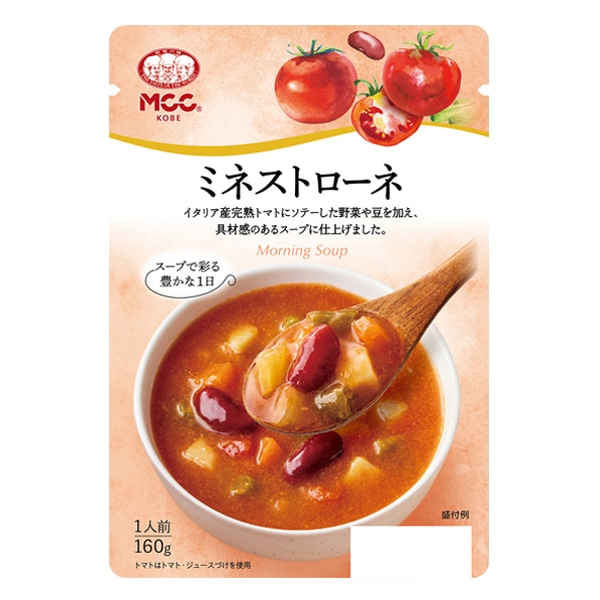 原材料名:野菜(たまねぎ、にんじん、セロリ、さやいんげん、かぼちゃ)、トマト・ジュースづけ(イタリア製造)、セミドライポテト、ソテードオニオン、味付レッドキドニー、バター、コンソメ、野菜エキス、大豆油、ナチュラルチーズ、ポークエキス、砂糖、香辛料、食塩/調味料(アミノ酸等)、くん液、カラメル色素、酸味料、(一部に小麦・乳成分・牛肉・大豆・鶏肉・豚肉を含む)