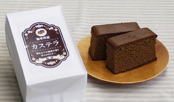 珈琲の香りとほのかな苦味が、しっとりふんわり生地のカステラを引きたてます。甘すぎず、大人向けの一品。