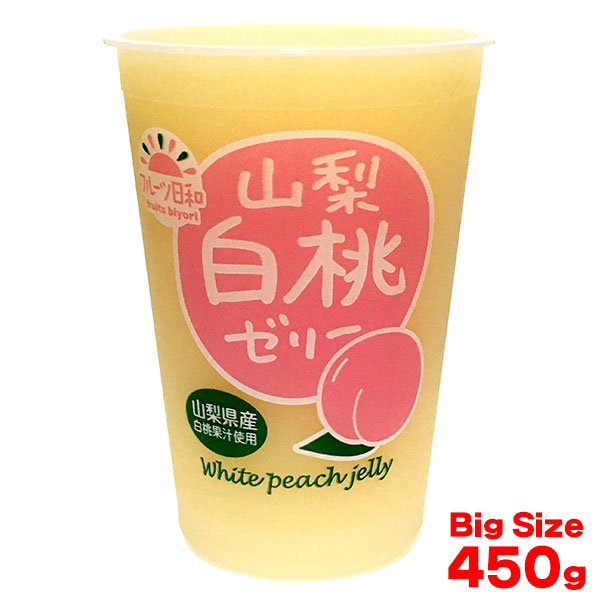 山梨県産白桃の果汁を使用した果肉食感の大容量のゼリーです。