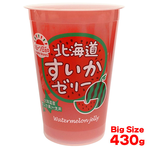 北海道産のすいか果汁を使用した果肉食感の大容量のゼリーです。夏にピッタリ、爽やかな味わいです。