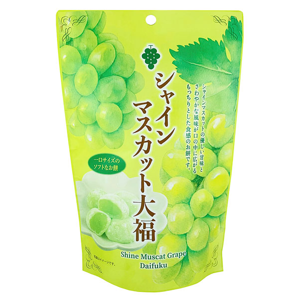 シャインマスカットの優しい甘味とさわやかな風味が特徴のもっちりとした食感のお餅です。