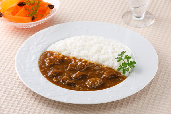 脂肪分の少ない上質の牛肉を使用し、 独自のブレンドスパイス(マサラ)で仕上げた、 爽やかな後味のヨーロピアンスタイルのカレーです。