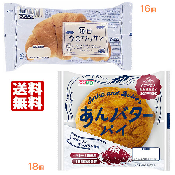 賞味期限2026/01/09 コモパン 毎日クロワッサン (16個) & あんバターパイ (18個) 【2ケース売り】 送料無料