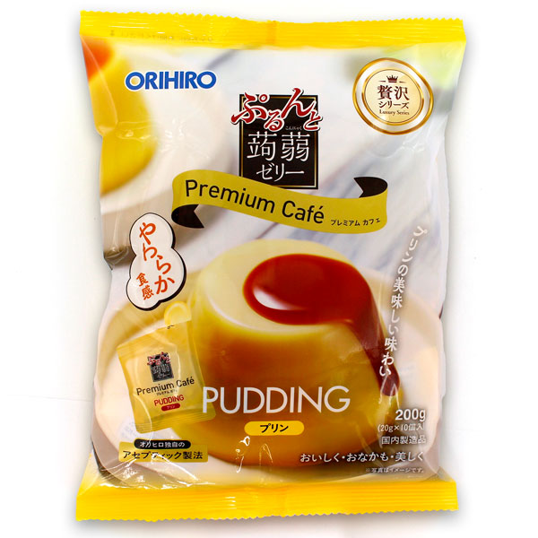 キャラメルプリンの風味豊かな蒟蒻ゼリーに仕上げました。オリヒロ独自のアセプティック製法※により、プリンの美味しさと香りをそのままゼリーにしたプレミアムな蒟蒻デザートです。 やわらかい食感に仕上げ、素材の味わいがより感じやすくなっております。 食べやすい安心タイプ形態で、ほっと一息つきたい時、手軽にカフェ気分を味わえる贅沢シリーズ・プレミアムカフェゼリーをどうぞお楽しみください。10個入り。