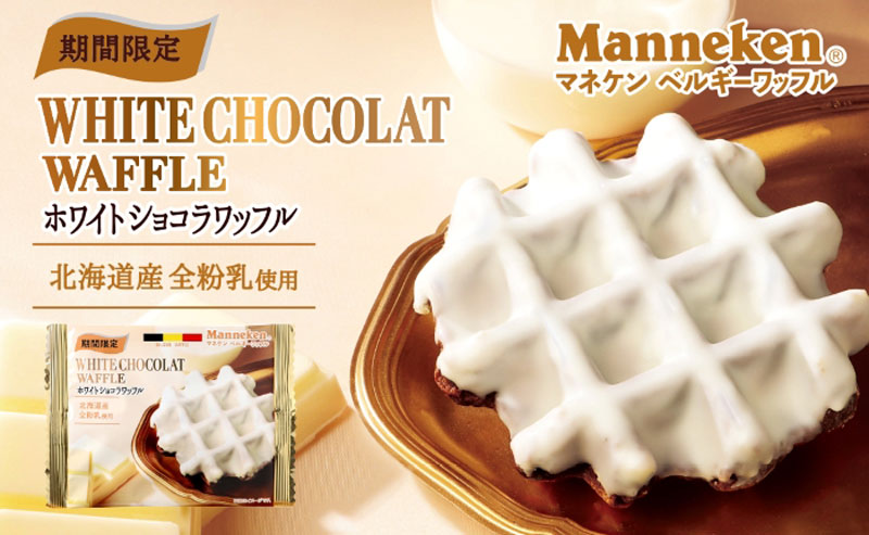 風味豊かな北海道産全粉乳と北海道産マスカルポーネを使用したチーズパウダーを合わせることで、ミルクのやさしい香りと濃厚な味わいが楽しめるホワイトチョココーチングに仕上げました。濃厚なミルクのコクが広がる期間限定「ホワイトショコラワッフル」です。