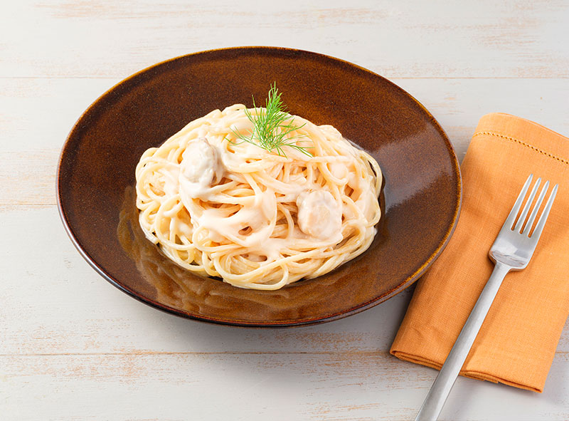 ほたて貝の旨みとエビバターの風味を加え、なめらかに仕上げたほたて貝のクリームソースです。