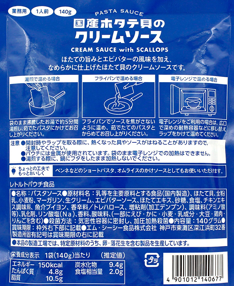 袋のまま沸騰したお湯で約5分間湯煎し、ゆでたパスタにかけてお召し上がりください。