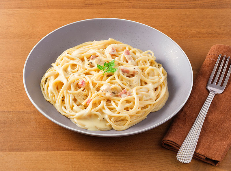 コクのある卵黄にベーコンの風味とチーズの旨味を加え、黒コショウで仕上げたなめらかなカルボナーラソースです。