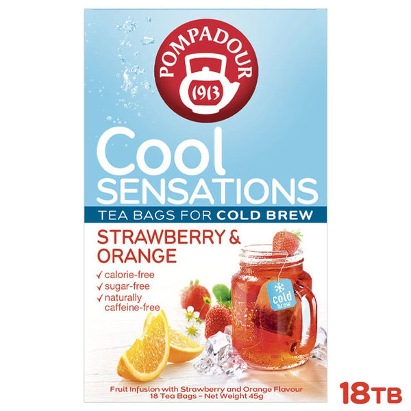 クールセンセーションはポンパドールの水出しハーブティーシリーズ。ストロベリーとオレンジがほんのり甘酸っぱい味わいの水出しハーブティーです。