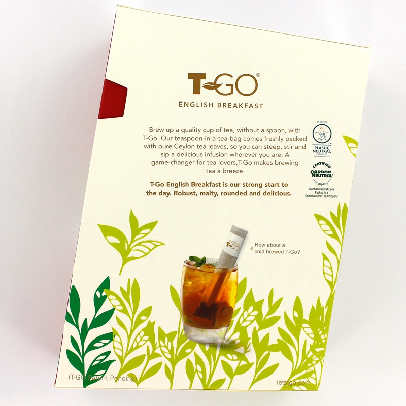 この形状のおかげで中身のインスタントティーの袋が取り出しやすくなっています。 ティーゴーのインスタントティーは細長く、カップからはみ出すような形状で、 ティーバッグの中には木製のスティック棒が入っていて、持ちやすく、かきまぜやすくなっています。 ちょっとしたギフトにも喜ばれるアイテムです。