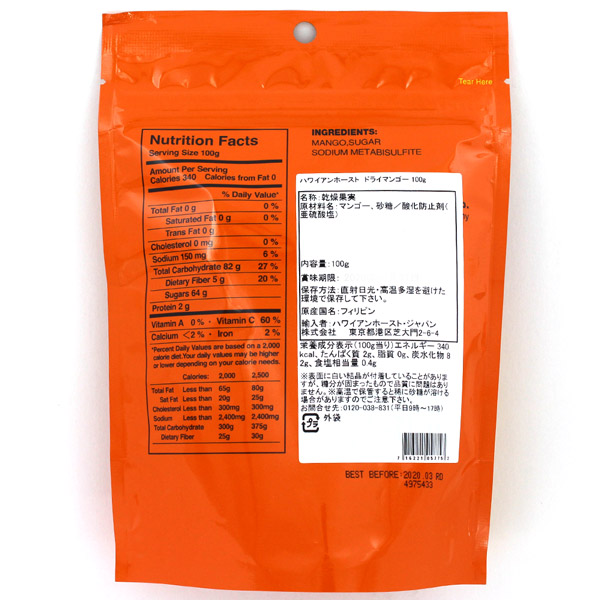 原材料名:マンゴー、砂糖/酸化防止剤(亜硫酸塩)