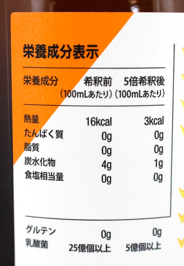 原材料名:有機紅茶キノコ、濃縮果汁(有機みかん、羅漢果)、有機パッションフルーツ果汁、乳酸菌/香料、クエン酸