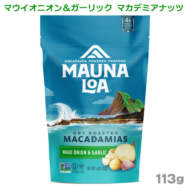 原材料名:マカデミアナッツ、オニオン・ガーリックシーズニング(オニオン、食塩、ぶどう糖、ガーリック、マルトデキストリン、香辛料、酵母エキス、植物油脂、たん白加水分解物)、植物油脂/リンゴ酸、香料(一部に大豆を含む)