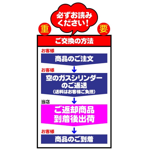 (元払いで空のガスシリンダーをご返送ください)