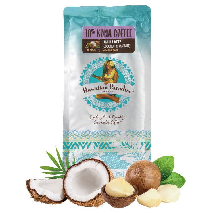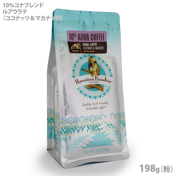 ハワイアン パラダイスコーヒー 10%コナブレンド・ルアウラテ(ココナッツ&マカダミア) 198g(粉)