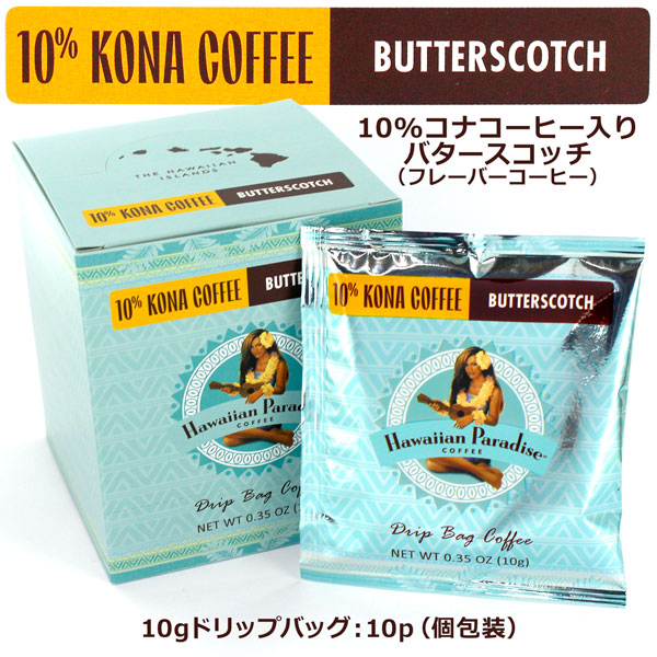 ハワイアン パラダイスコーヒー 10%コナブレンド・バタースコッチ ドリップバックタイプ 【10杯分入】 フレーバーコーヒー