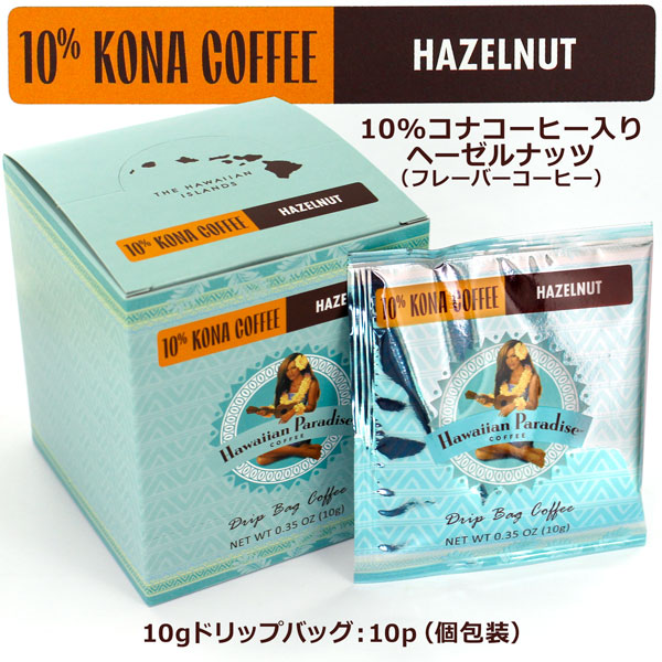 ハワイアン パラダイスコーヒー 10%コナブレンド・ヘーゼルナッツ ドリップバックタイプ 【10杯分入】 フレーバーコーヒー
