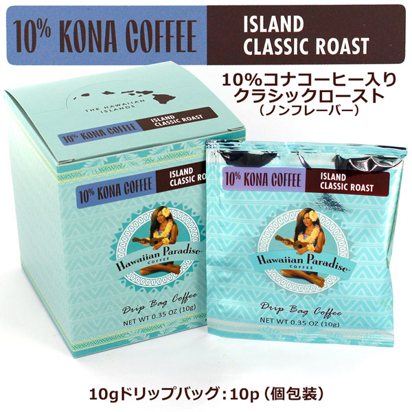ハワイアン パラダイスコーヒー 10%コナブレンド・アイランド クラシックロースト ドリップバックタイプ 【10杯分入】 ノンフレーバー
