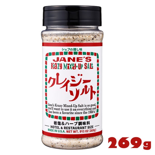 クレイジーソルトは、岩塩と6種類(オニオン、ブラックペッパー、ガーリック、セロリシード、タイム、オレガノ)のハーブ&スパイスをブレンドした調味料です。 岩塩ならではのうま味とハーブをブレンドすることで、和・洋・中華・エスニックどんなお料理もひと振りでたちまちシェフの味に変えてしまうことからお料理時間を短縮させてくれる万能調味料として人気があります。
