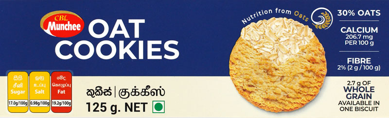 植物繊維豊富なオーツ麦を30%配合、厚みがあってザクザクした食感が楽しいクッキーです。