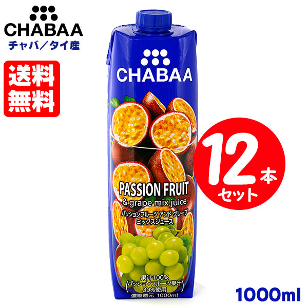 送料無料 CHABAA チャバ パッションフルーツ&グレープ ミックスジュース 1000ml×【12本セット】タイ産 濃縮還元 果汁100%ジュース 砂糖・香料・着色料不使用