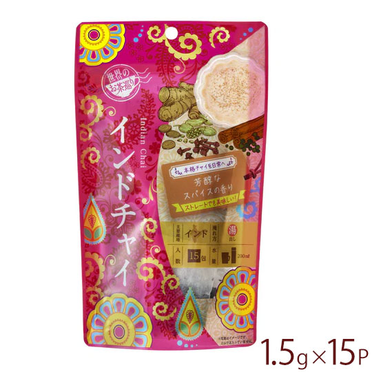 世界のお茶巡り インドチャイ 1.5g×15P お徳用ヒモなしティーバッグ