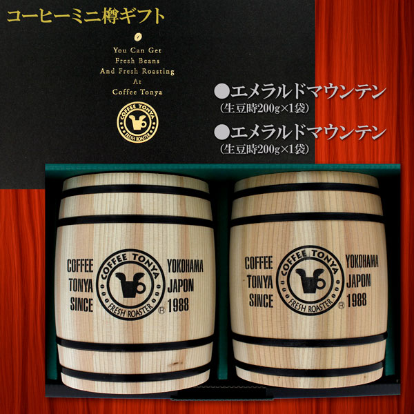 コーヒーミニ樽ギフト エメラルドマウンテン 生豆時200g×2袋 BE2 送料無料