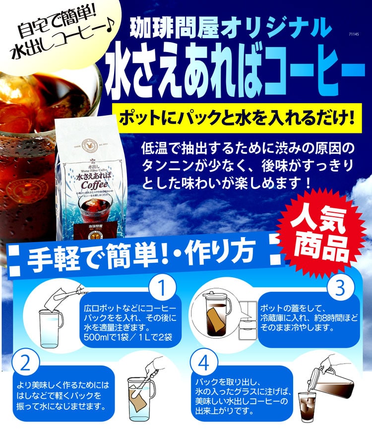 カフェインレスのアイスコーヒーが簡単に作れます。