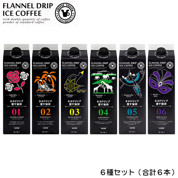 珈琲問屋 ネルドリップ愛す珈琲 アソート6種セット 1L×6本 無糖 リキッドアイスコーヒー テトラパック