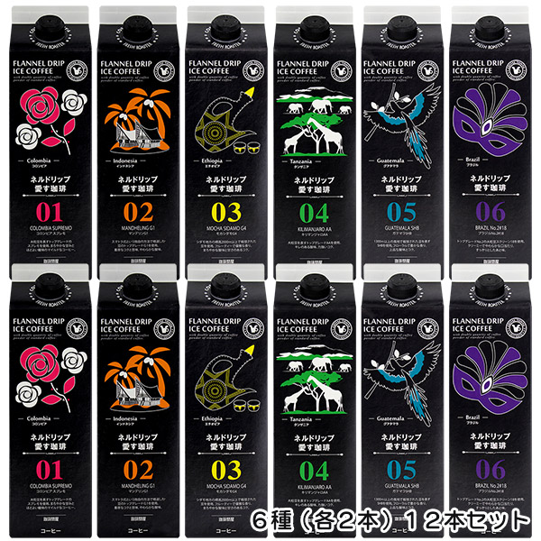 珈琲問屋 ネルドリップ愛す珈琲 アソート12本入 6種 1L×各2本 無糖 リキッドアイスコーヒー テトラパック セット割引