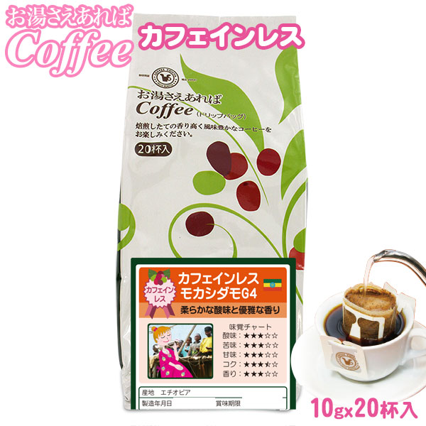 エチオピア産モカシダモG4から風味と旨み成分をそのままにカフェインを限りなく取り除いたヘルシーコーヒー。