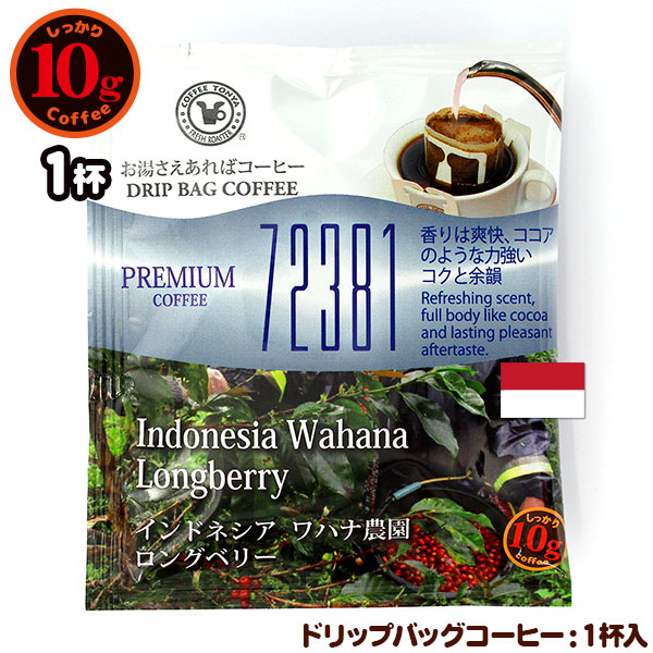 10gドリップバッグ 72381 インドネシア ワハナ農園 ロングベリー 1杯 お湯さえあればコーヒー 特別な日に飲みたいコーヒー