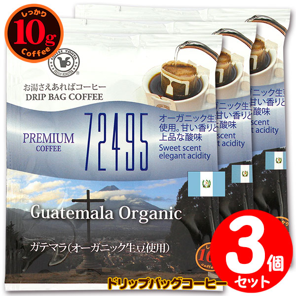 10gドリップバッグ 72495 ガテマラ (オーガニック生豆使用) 3杯 お湯さえあればコーヒー 特別な日に飲みたいコーヒー 【10gx3袋】