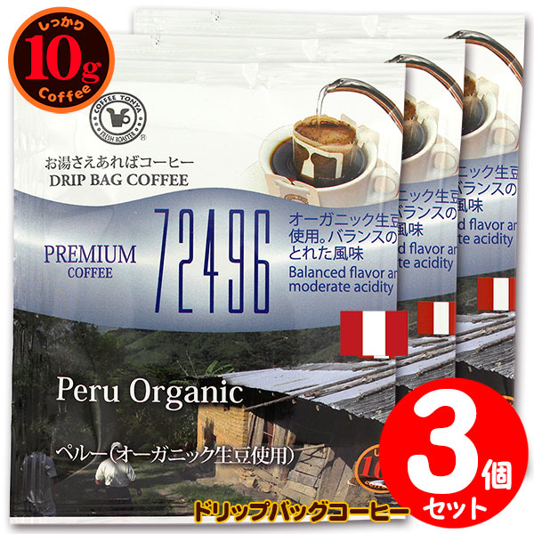 10gドリップバッグ 72496 ペルー (オーガニック生豆使用) 3杯 お湯さえあればコーヒー 特別な日に飲みたいコーヒー 【10gx3袋】