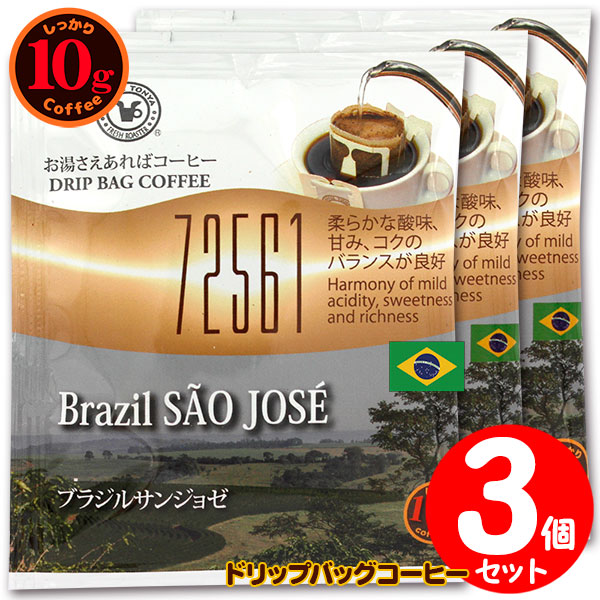 10gドリップバッグ 72561 ブラジルサンジョゼ 3杯 お湯さえあればコーヒー 特別な日に飲みたいコーヒー 【10gx3袋】