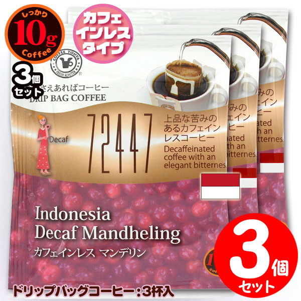 10gドリップバッグ 72447 カフェインレス マンデリン 3杯 お湯さえあればコーヒー 特別な日に飲みたいコーヒー 【10gx3袋】