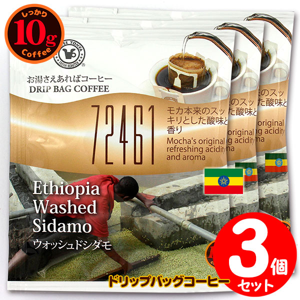 10gドリップバッグ 72461 ウォッシュドシダモ 3杯 お湯さえあればコーヒー 特別な日に飲みたいコーヒー 【10gx3袋】
