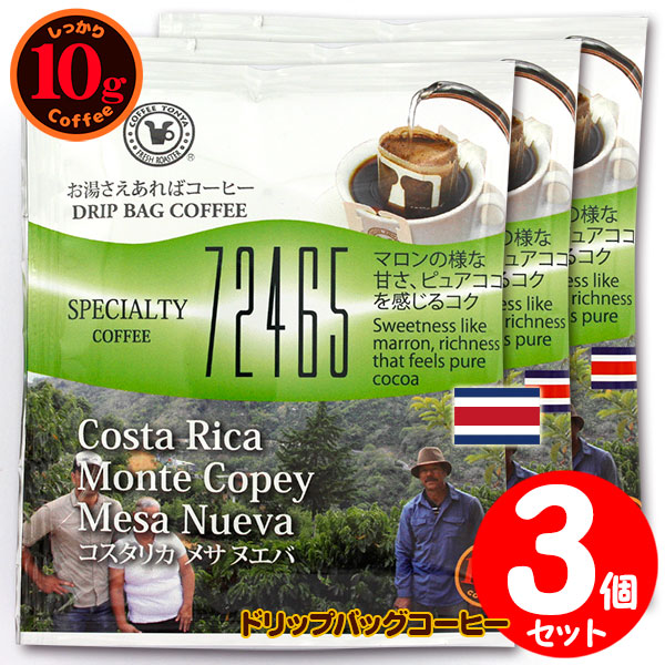 10gドリップバッグ 72465 コスタリカ メサ ヌエバ 3杯 お湯さえあればコーヒー 特別な日に飲みたいコーヒー 【10gx3袋】