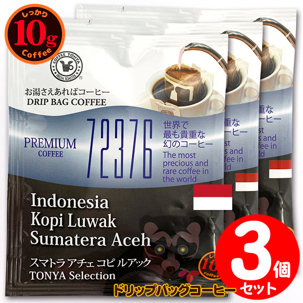 10gドリップバッグ 72376 スマトラアチェ コピルアック Tonya S 3杯 お湯さえあればコーヒー 特別な日に飲みたいコーヒー 【10gx3袋】