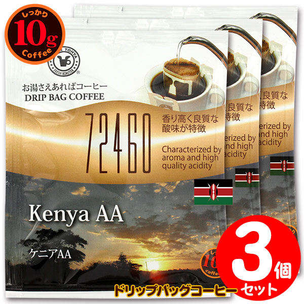 10gドリップバッグ 72460 ケニアAA 3杯 お湯さえあればコーヒー 特別な日に飲みたいコーヒー 【10gx3袋】