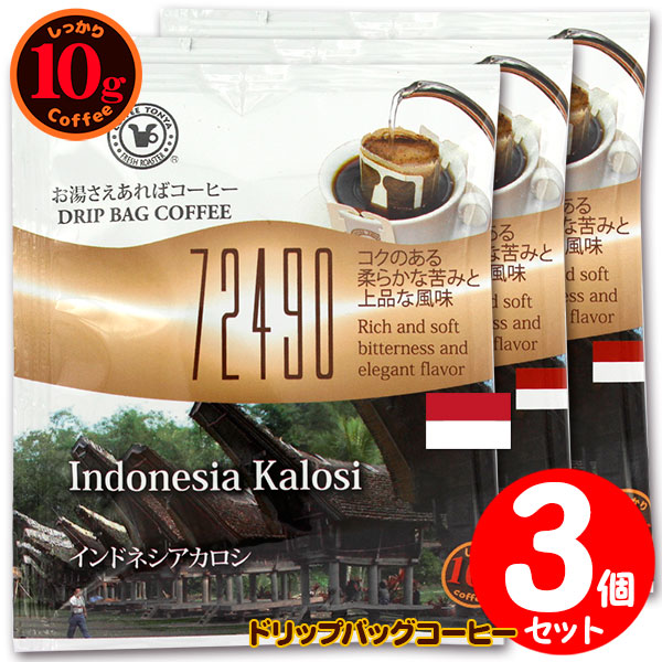 10gドリップバッグ 72490 インドネシアカロシ 3杯 お湯さえあればコーヒー 特別な日に飲みたいコーヒー 【10gx3袋】