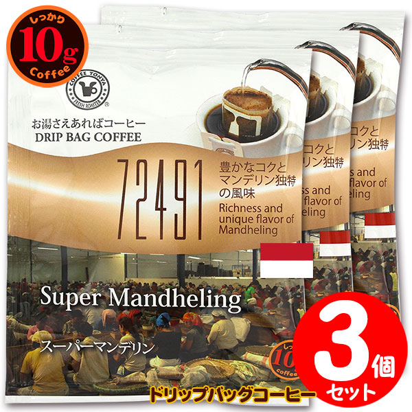 10gドリップバッグ 72491 スーパーマンデリン 3杯 お湯さえあればコーヒー 特別な日に飲みたいコーヒー 【10gx3袋】