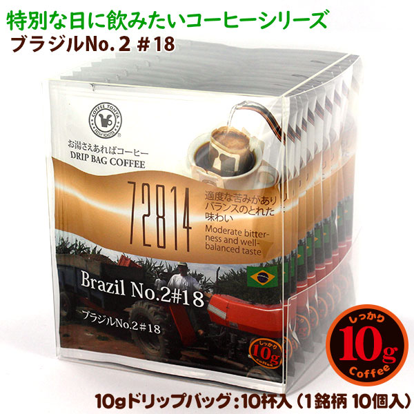 10gドリップバッグ 72814 ブラジルNo.2#18 10杯 お湯さえあればコーヒー 特別な日に飲みたいコーヒー 【10gx10袋】