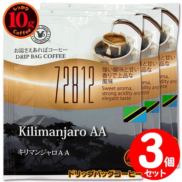 10gドリップバッグ 72812 キリマンジャロAA 3杯 お湯さえあればコーヒー 特別な日に飲みたいコーヒー 【10gx3袋】