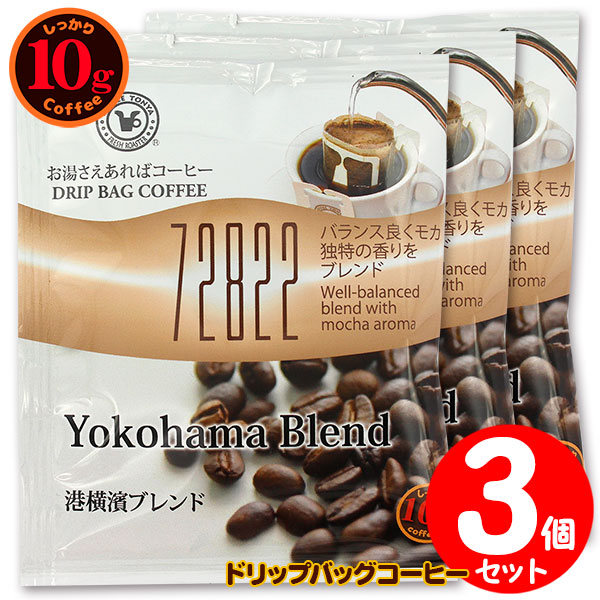 10gドリップバッグ 72822 港横濱ブレンド 3杯 お湯さえあればコーヒー 特別な日に飲みたいコーヒー 【10gx3袋】