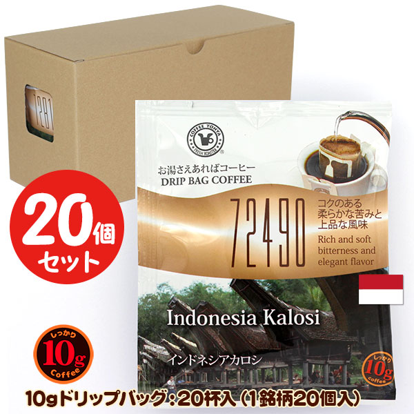 10gドリップバッグ 72490 インドネシアカロシ 20杯 お湯さえあればコーヒー 特別な日に飲みたいコーヒー 【10gx20袋】
