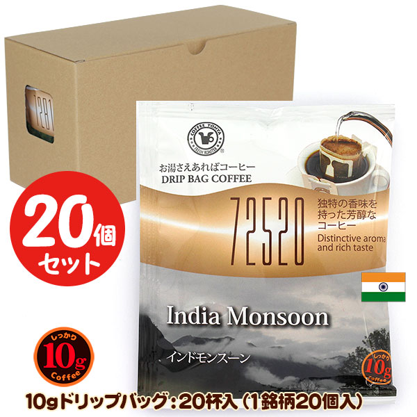 10gドリップバッグ 72520 インドモンスーン 20杯 お湯さえあればコーヒー 特別な日に飲みたいコーヒー 【10gx20袋】