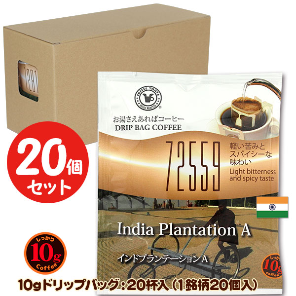 10gドリップバッグ 72559 インドプランテーションA 20杯 お湯さえあればコーヒー 特別な日に飲みたいコーヒー 【10gx20袋】