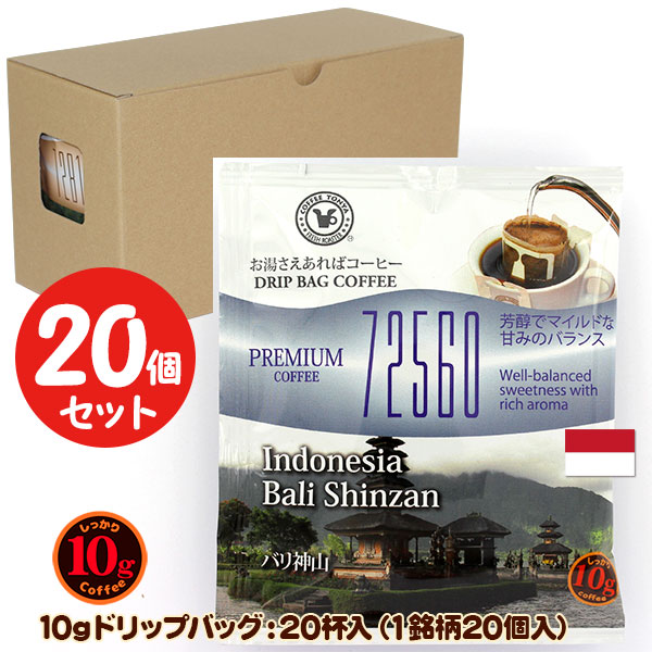 10gドリップバッグ 72560 バリ神山 20杯 お湯さえあればコーヒー 特別な日に飲みたいコーヒー 【10gx20袋】