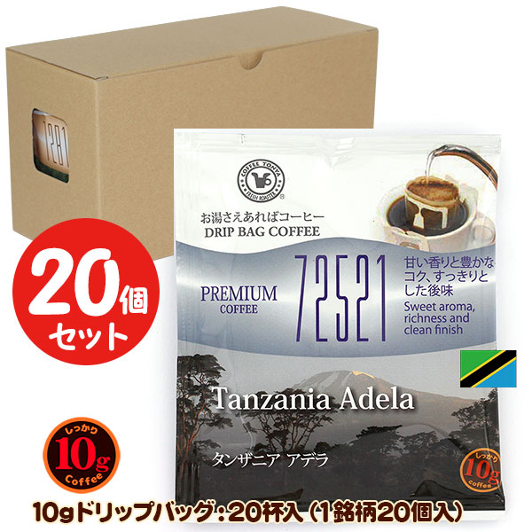 10gドリップバッグ 72521 タンザニア アデラ 20杯 お湯さえあればコーヒー 特別な日に飲みたいコーヒー 【10gx20袋】